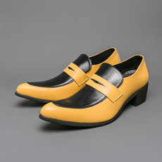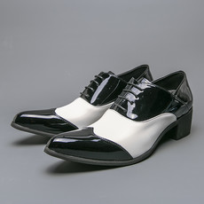 光明鞋店男士高跟增高经典黑白拼色乐福鞋一