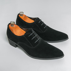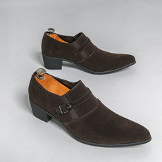 光明鞋店男士跨境高跟磨砂商务系带尖头皮鞋