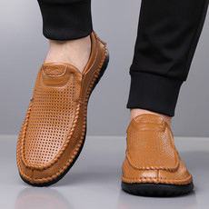 联合网批鞋业头层牛皮真皮套脚商务休闲男鞋