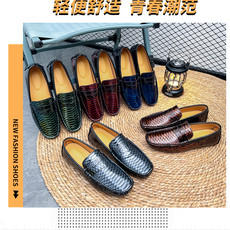 中百-181 头层牛皮鳄鱼纹潮男休闲豆豆
