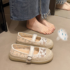 夏季新款蕾丝镂空小香风渔夫鞋草编甜美透气