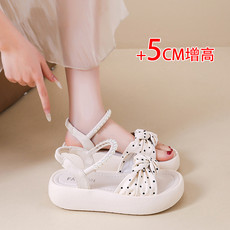 夏季新款波点小香风珍珠松紧带罗马凉鞋透气